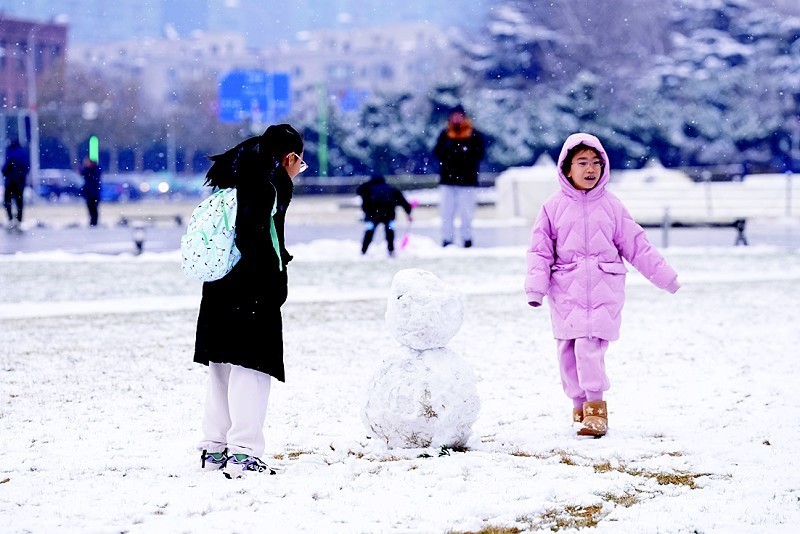 市民踏雪留痕,真切感受到冬日来临。漫步雪中,宁静与美好、纯真与快乐,皆是这个冬天的馈赠。